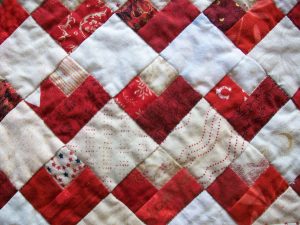 This small quilt, 16 in square, was made for the Quilt Alliance 2016 contest. The theme this year is playing favorites. I happen to love flag quilts (and my country). I also am fond of scrape quilts and this one uses multiple red and beige fabrics.